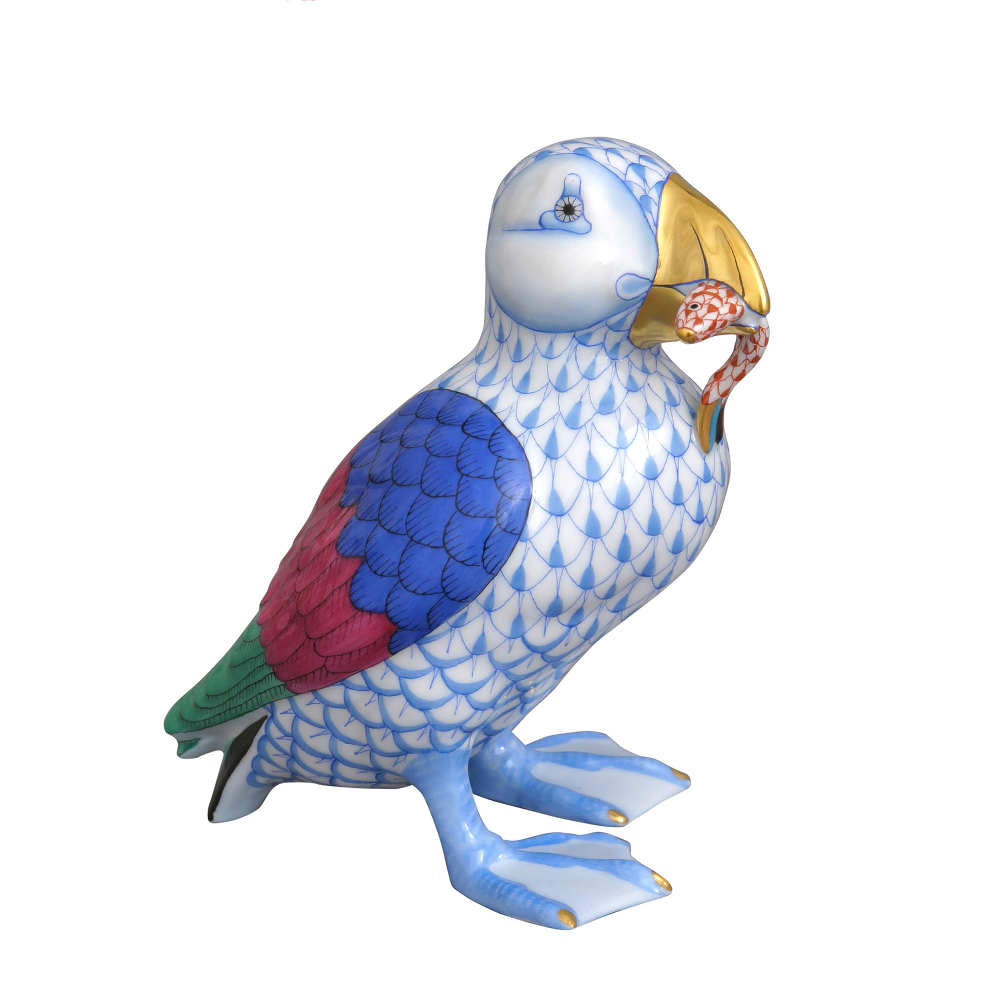 This wonderful 5-inch Puffin with Fish in blue (VHB) is one of my very favourite pieces. In his beak he holds a recently caught fish, painted in Herend VH (red).