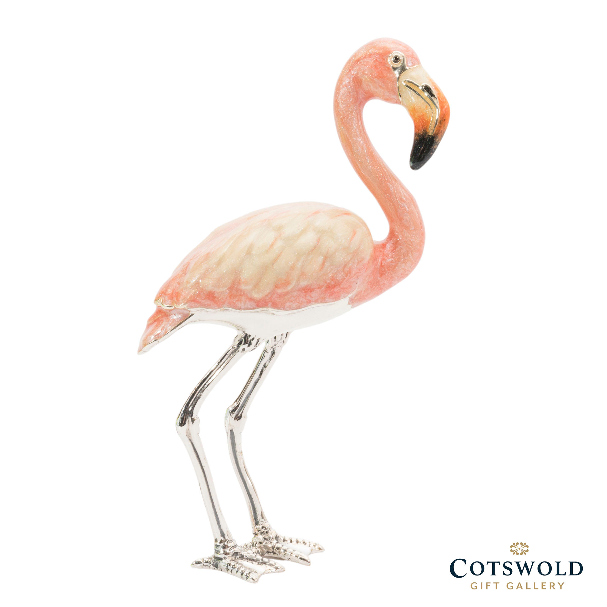 Carrying full UK assay marks and coated with a protective lacquer to preserve its shine, this finely enamelled flamingo combines craftsmanship and charm in perfect measure – an eye-catching piece of Italian artistry that radiates character and grace.