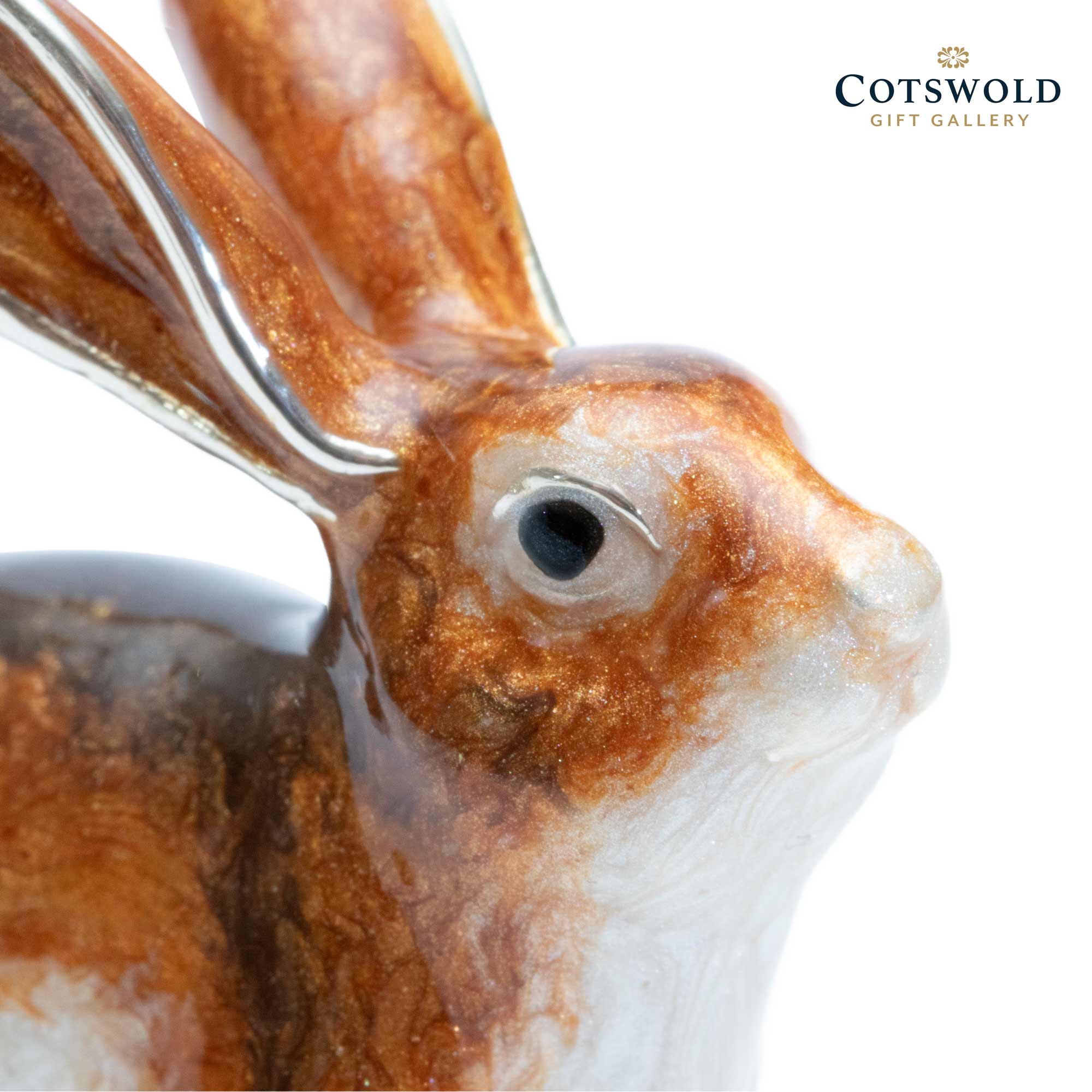 Each hare is handcrafted in Tuscany from solid 925 sterling silver and enriched with layers of translucent enamel. Warm russet tones blend with soft whites and silvery highlights to recreate the play of sunlight on fur, while every contour and whisker reflects Saturno’s hallmark precision.