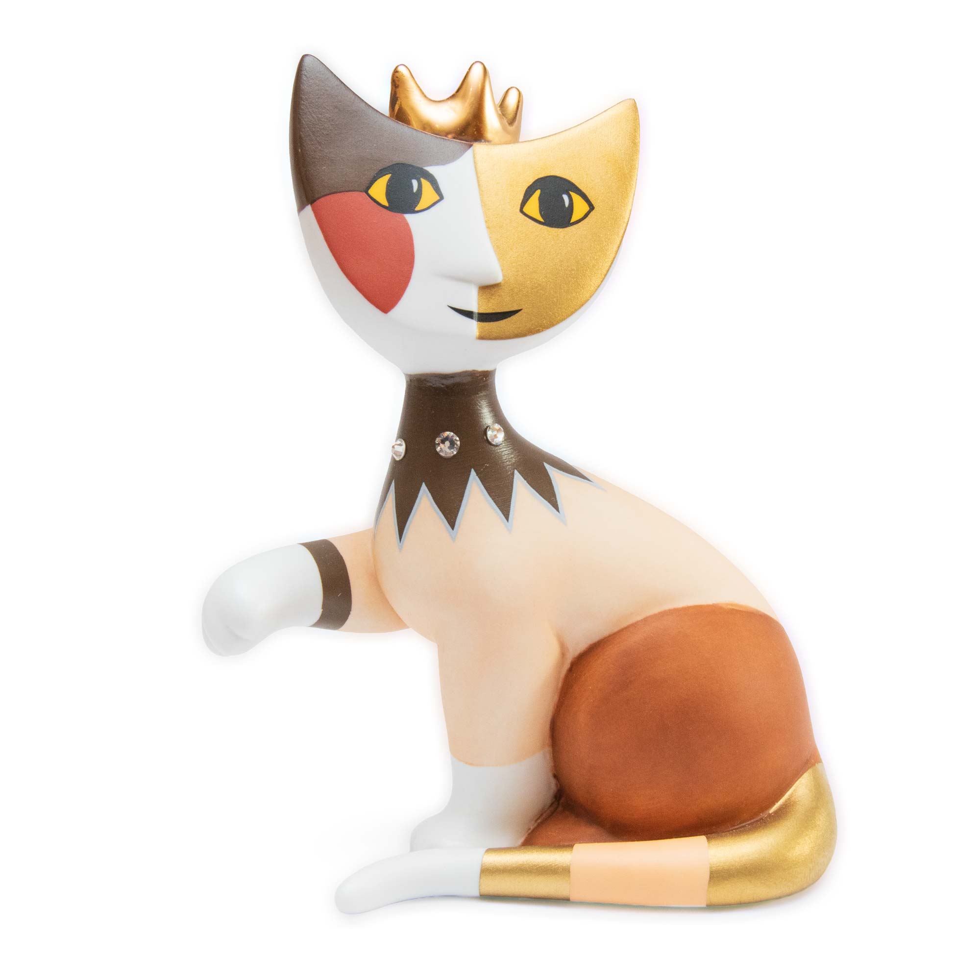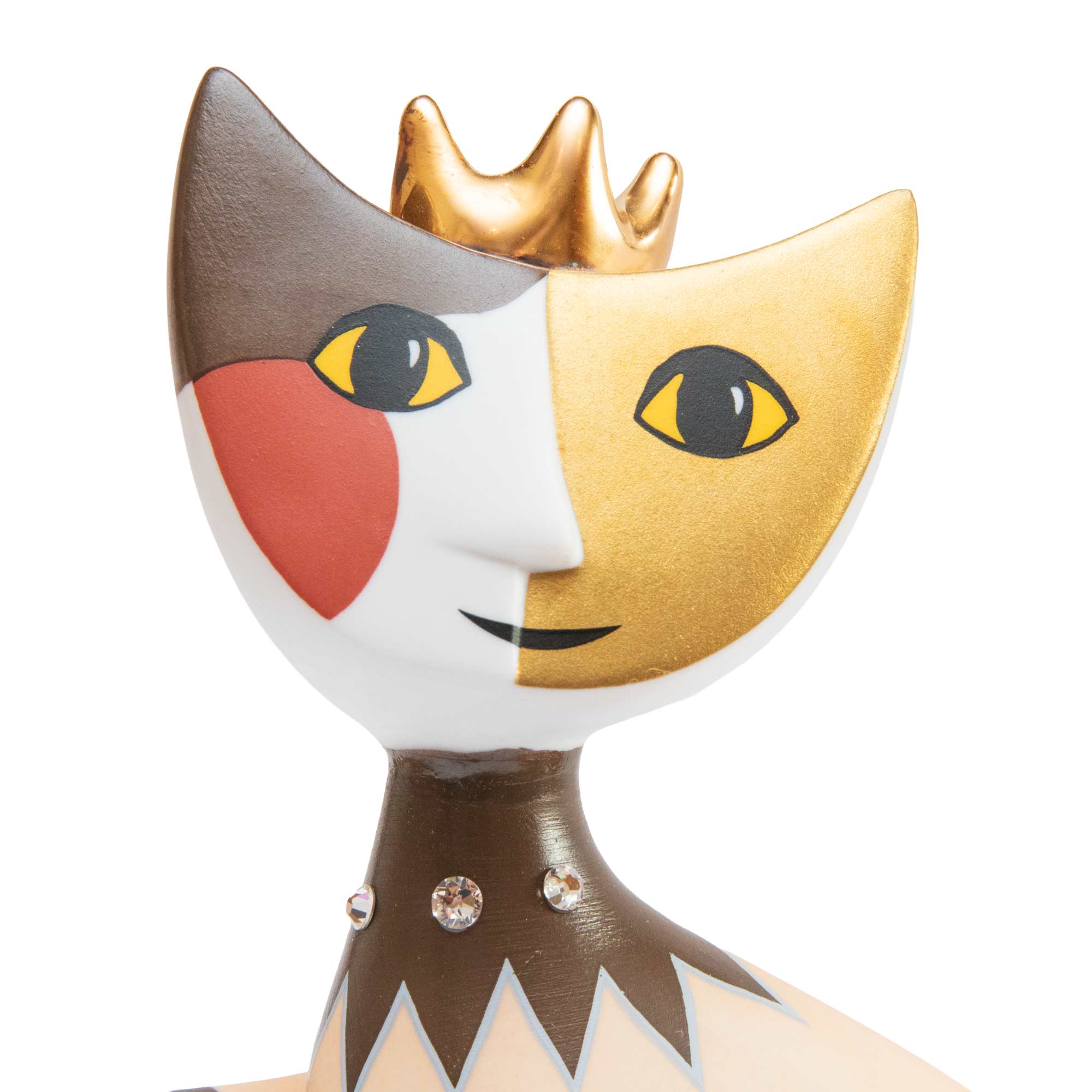 With her soft colours, golden crown and gentle poise, Gina the Princess embodies Rosina Wachtmeister’s distinctive blend of elegance and whimsy. Her serene expression and playful design reflect the artist’s love of feline grace – and make her a natural match for Max the King, her regal counterpart. Together or alone, she brings quiet sophistication and charm to any collection.